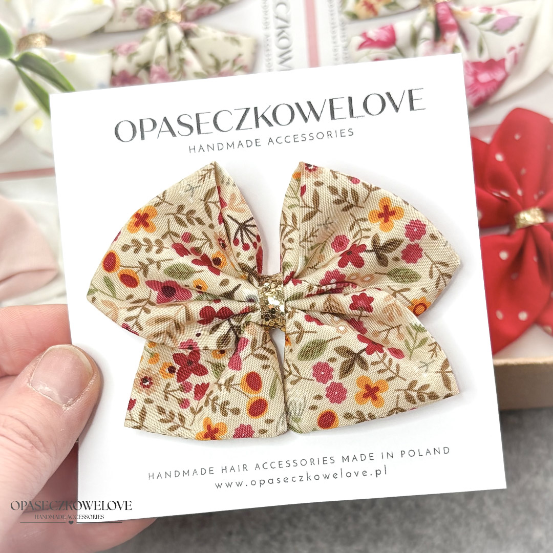 Kokardka Ali – beżowa w kolorowe kwiatuszki – opaska / spinka
