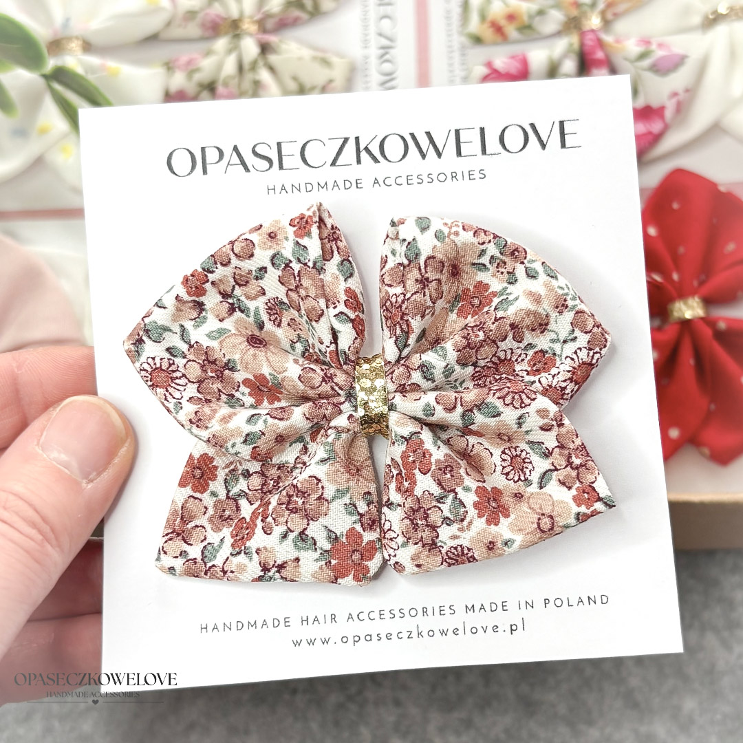 Kokardka Ali – biała w brązowe kwiatuszki – opaska / spinka