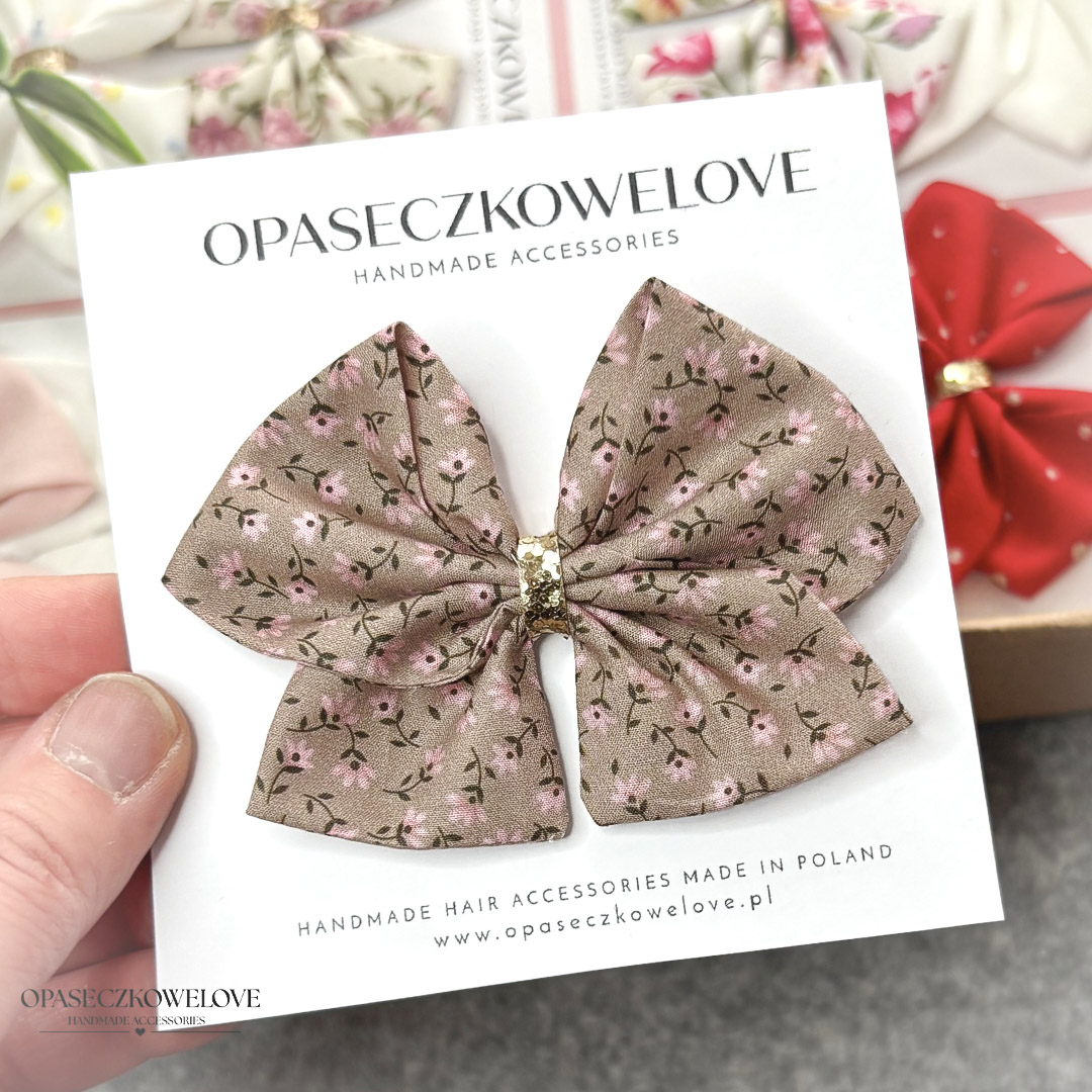 Kokardka Ali – ciemny beż w mini kwiatuszki – opaska / spinka