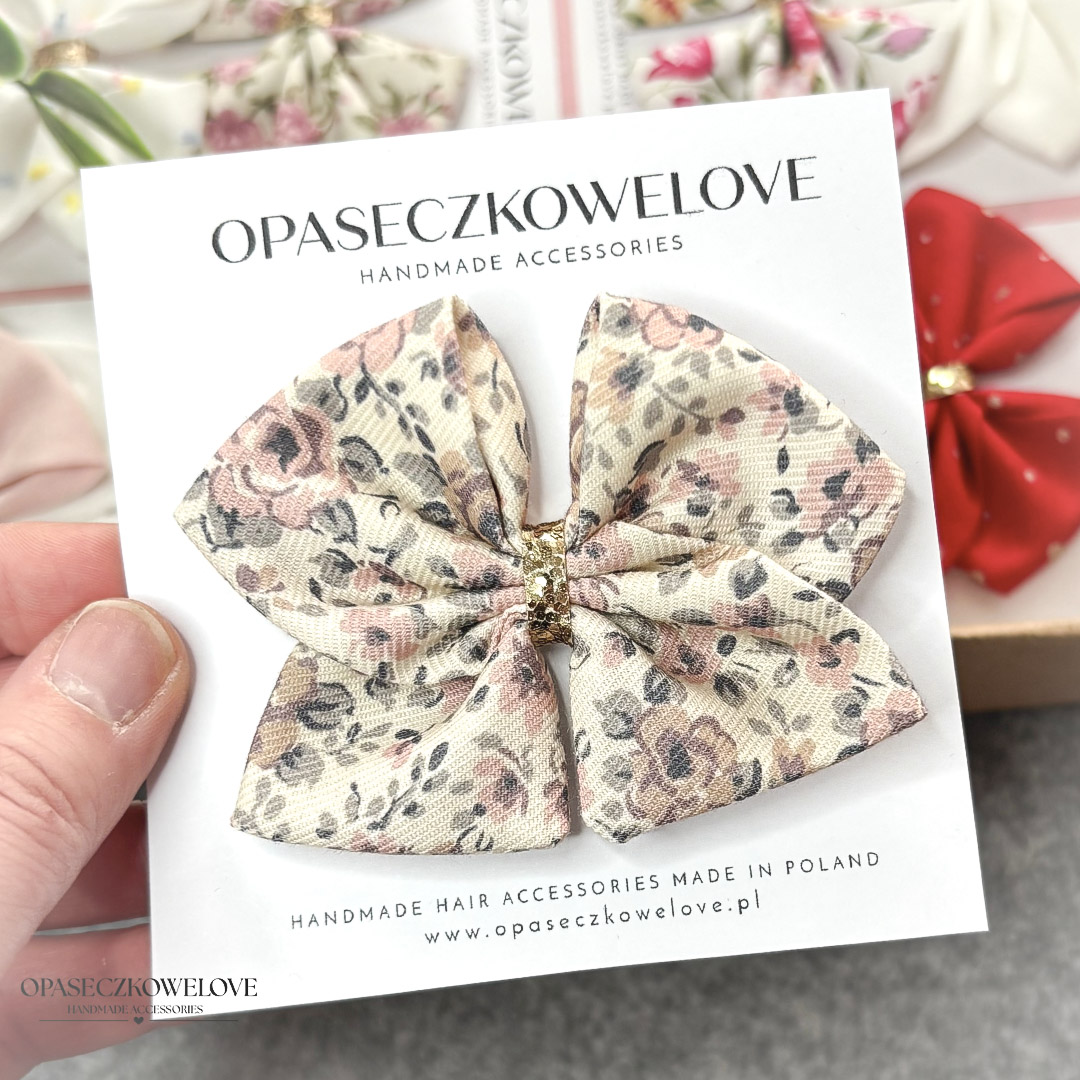 Kokardka Ali – kremowa w różyczki – opaska / spinka