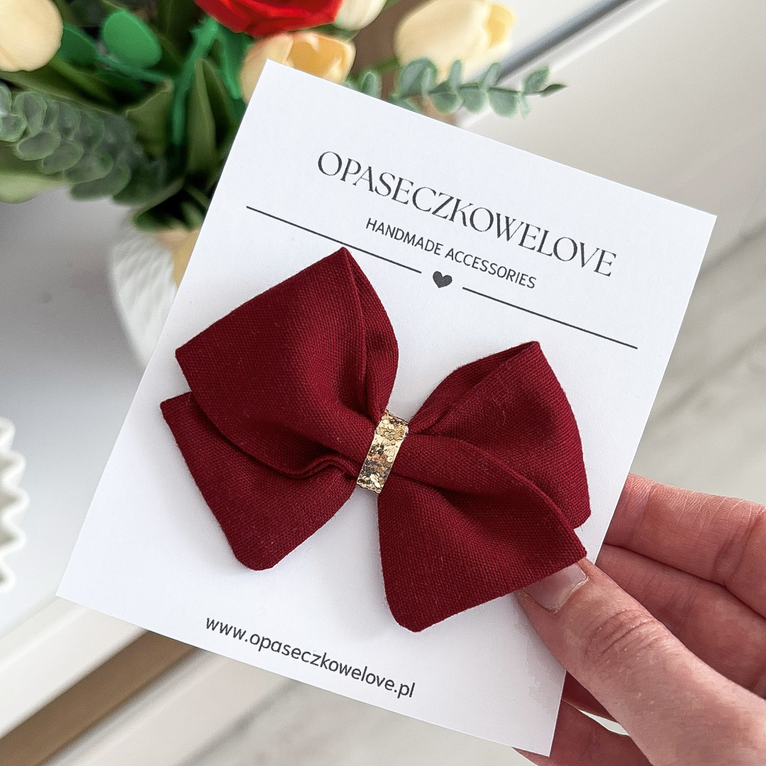 Kokardka bordowa – model Lili – opaska / spinka – len