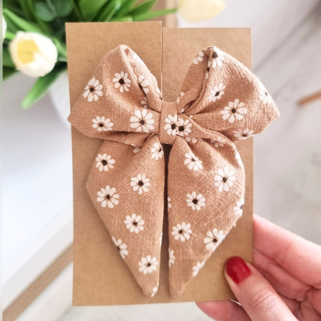 Kokardka Elen – spinka brązowa w stokrotki
