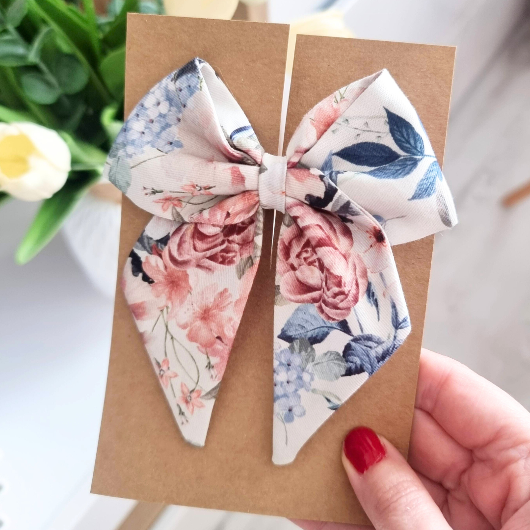 Kokardka Elen – spinka ecru w kwiaty