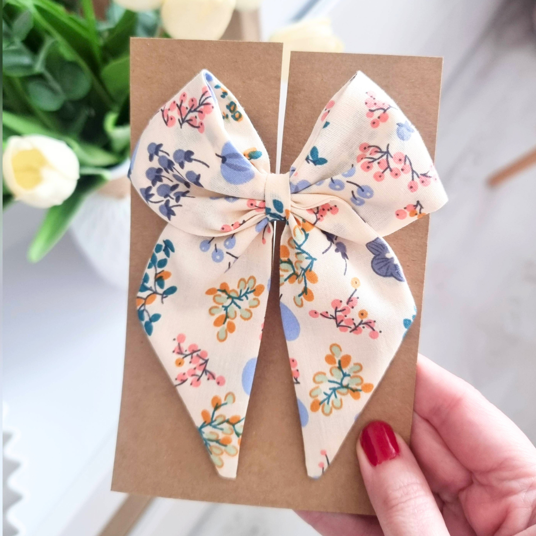 Przepiękna kokardka ELEN – to model kokardki z charakterystycznymi ogonkami, stworzona z myślą o starszych dziewczynkach, ale również i ich mamach.