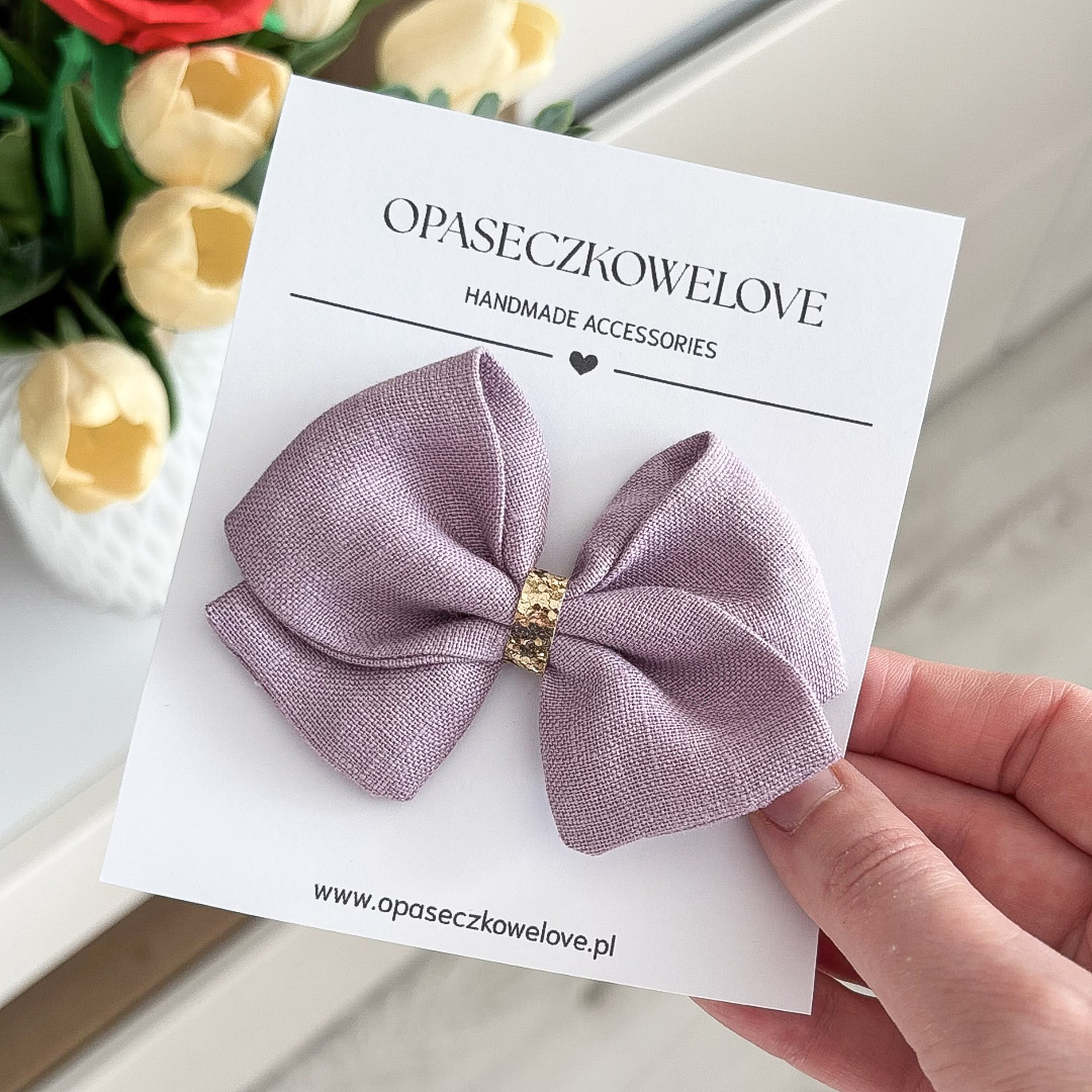 Kokardka fioletowa – model Lili – opaska / spinka – len