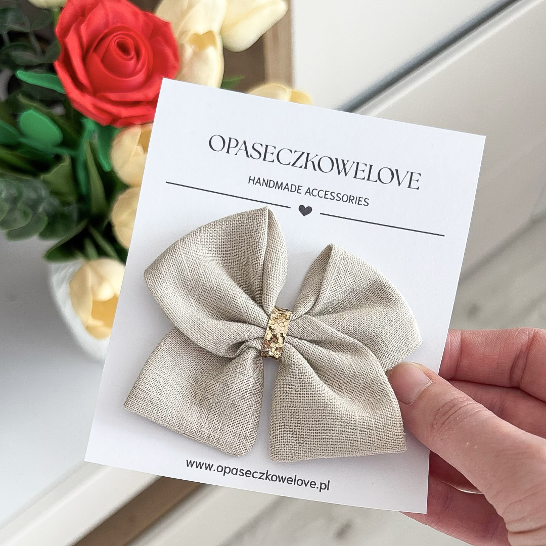 Kokardka jasny chłodny beż – model Ali – opaska / spinka – len
