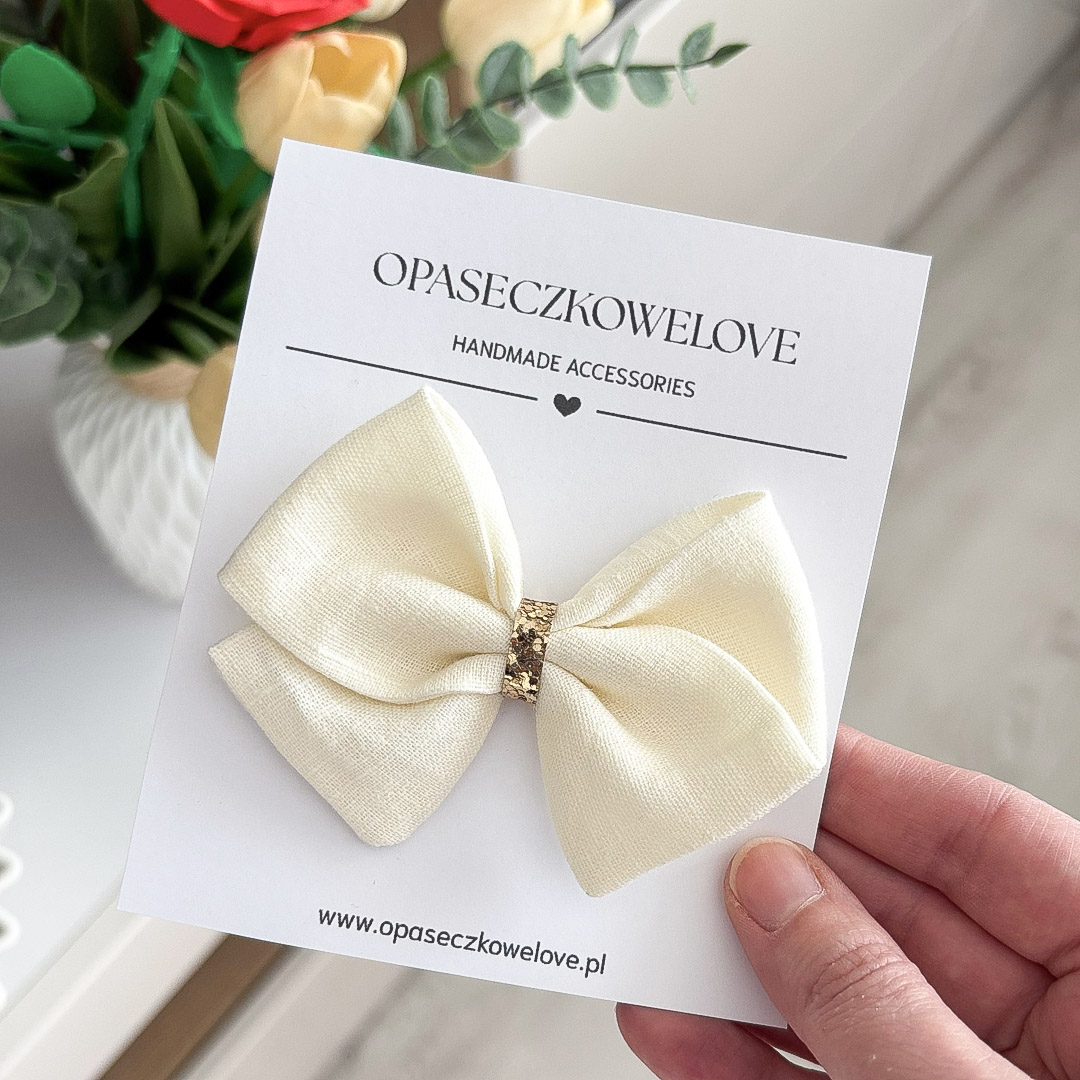 Kokardka kremowa – model Lili – opaska / spinka – len