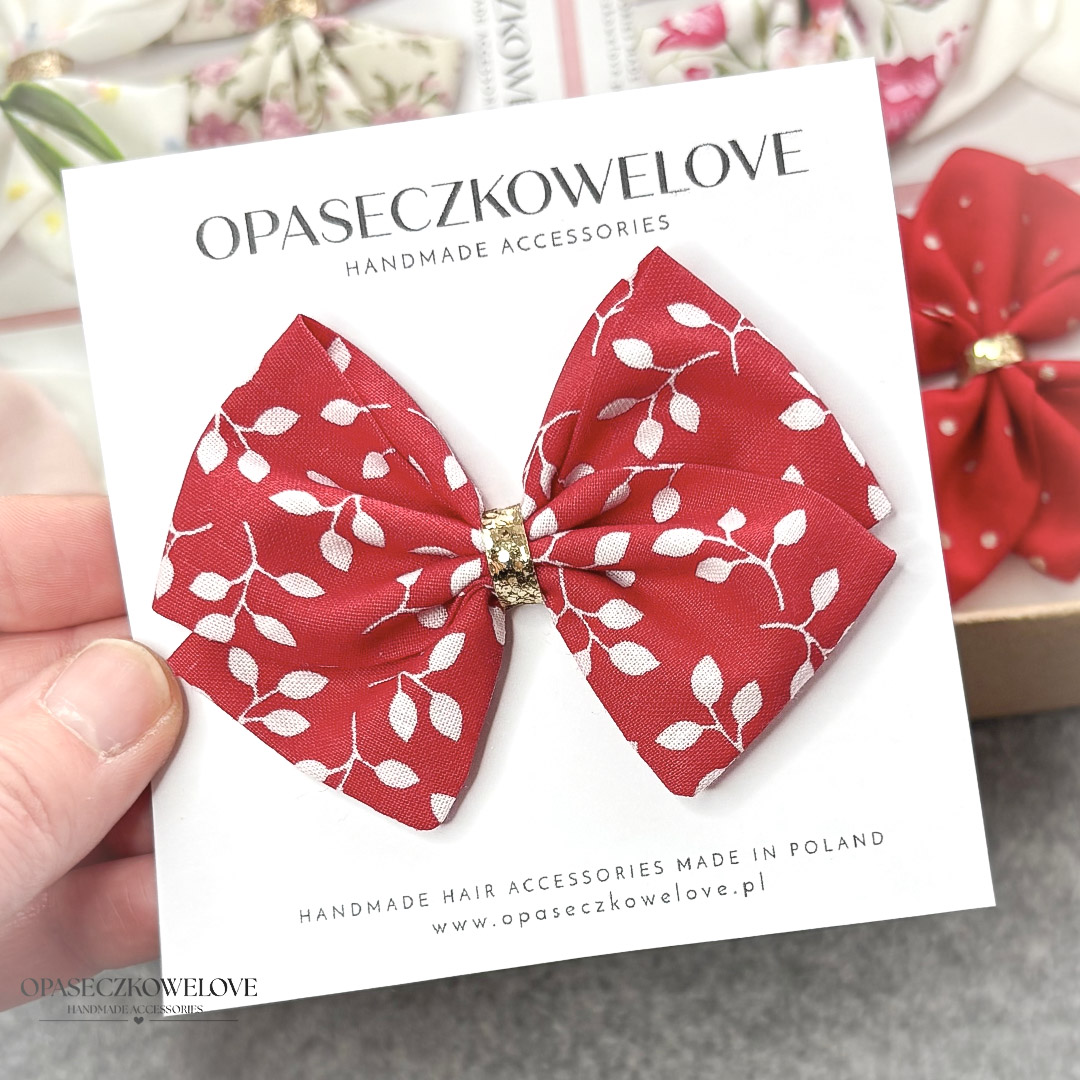 Kokardka Lili – czerwona w białe gałązki – opaska / spinka