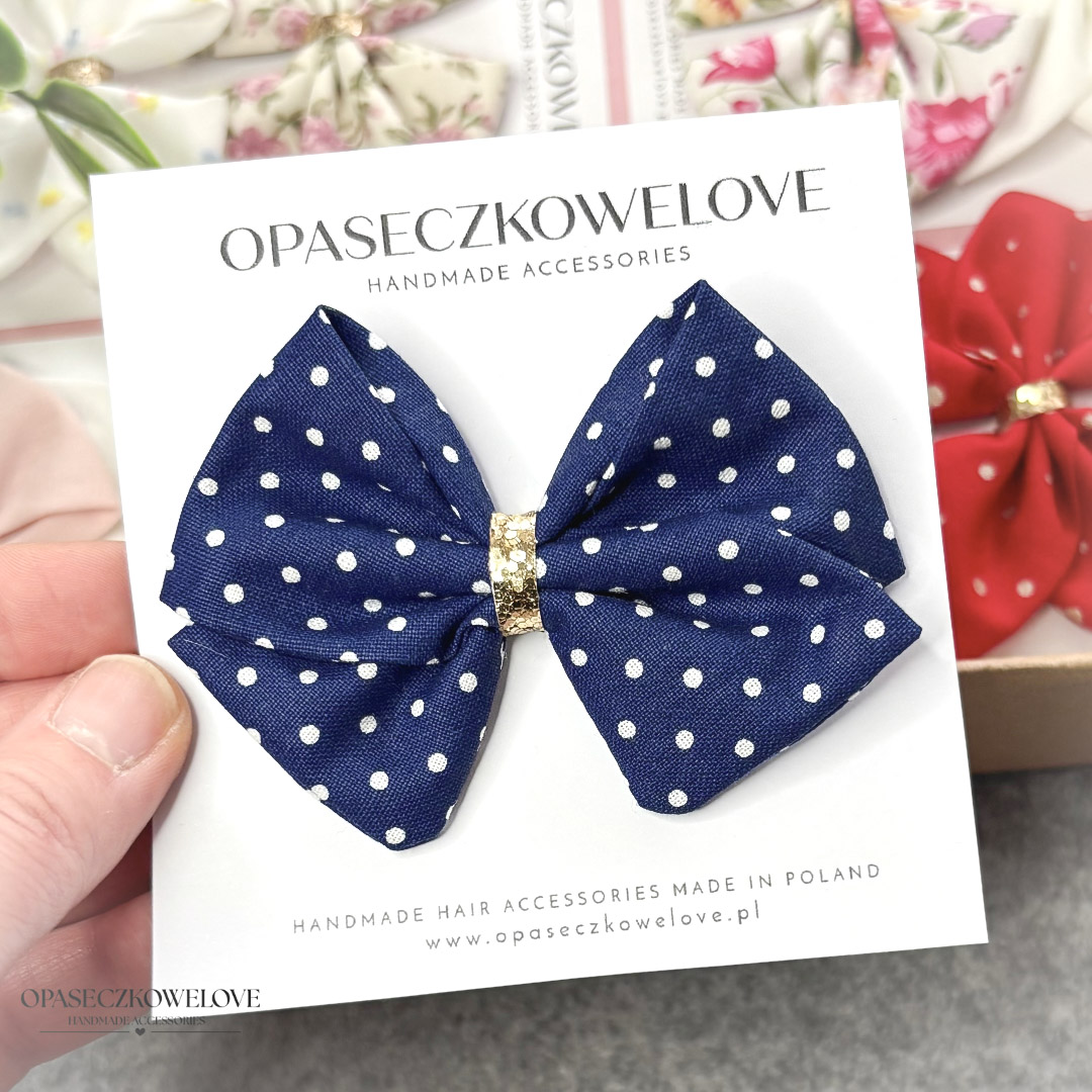 Kokardka Lili – granatowa w białe groszki – opaska / spinka