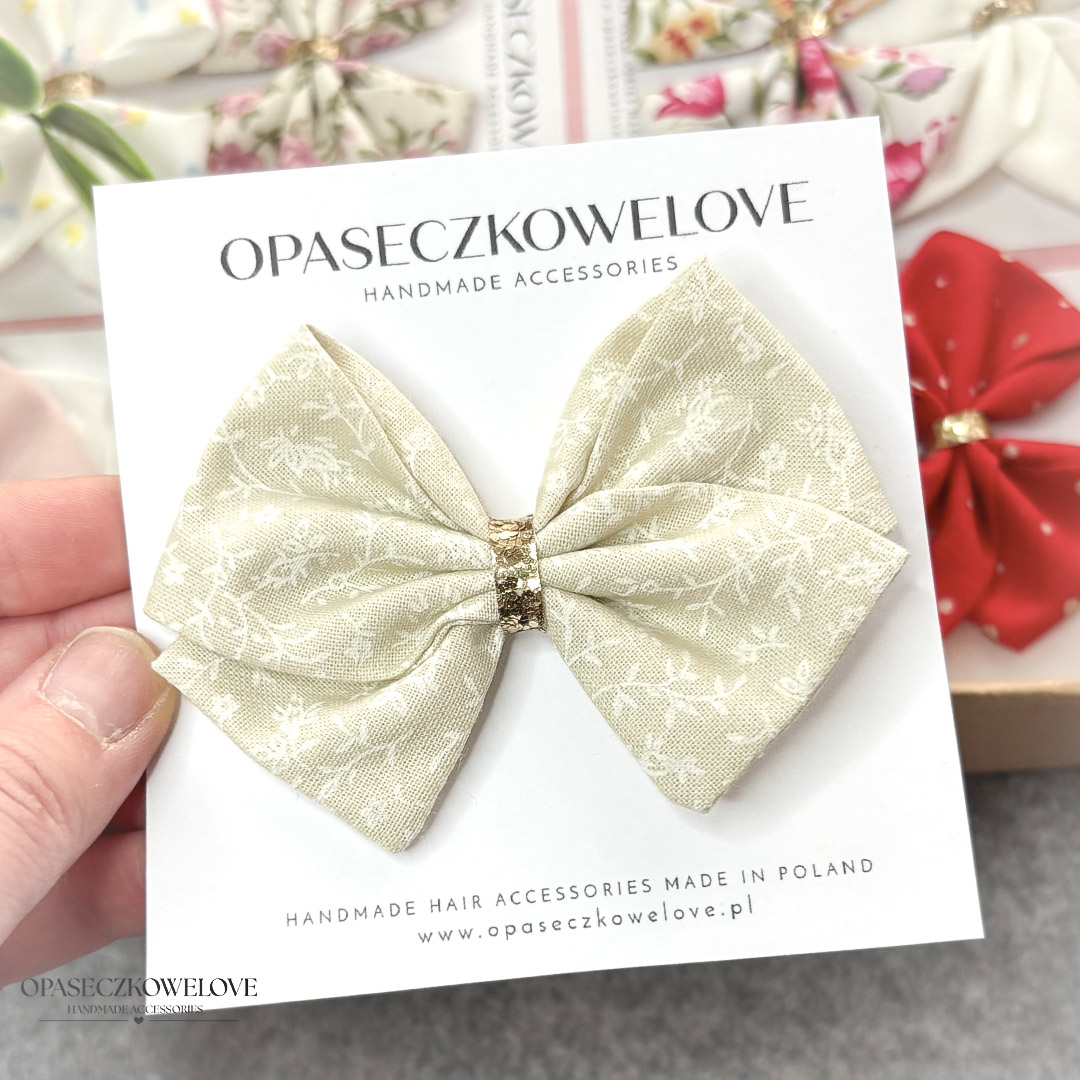 Kokardka Lili – kremowa w ecru gałązki – opaska / spinka