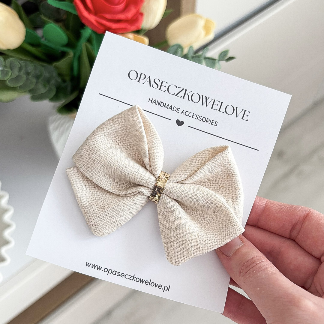 Kokardka naturalna – model Lili – opaska / spinka – len