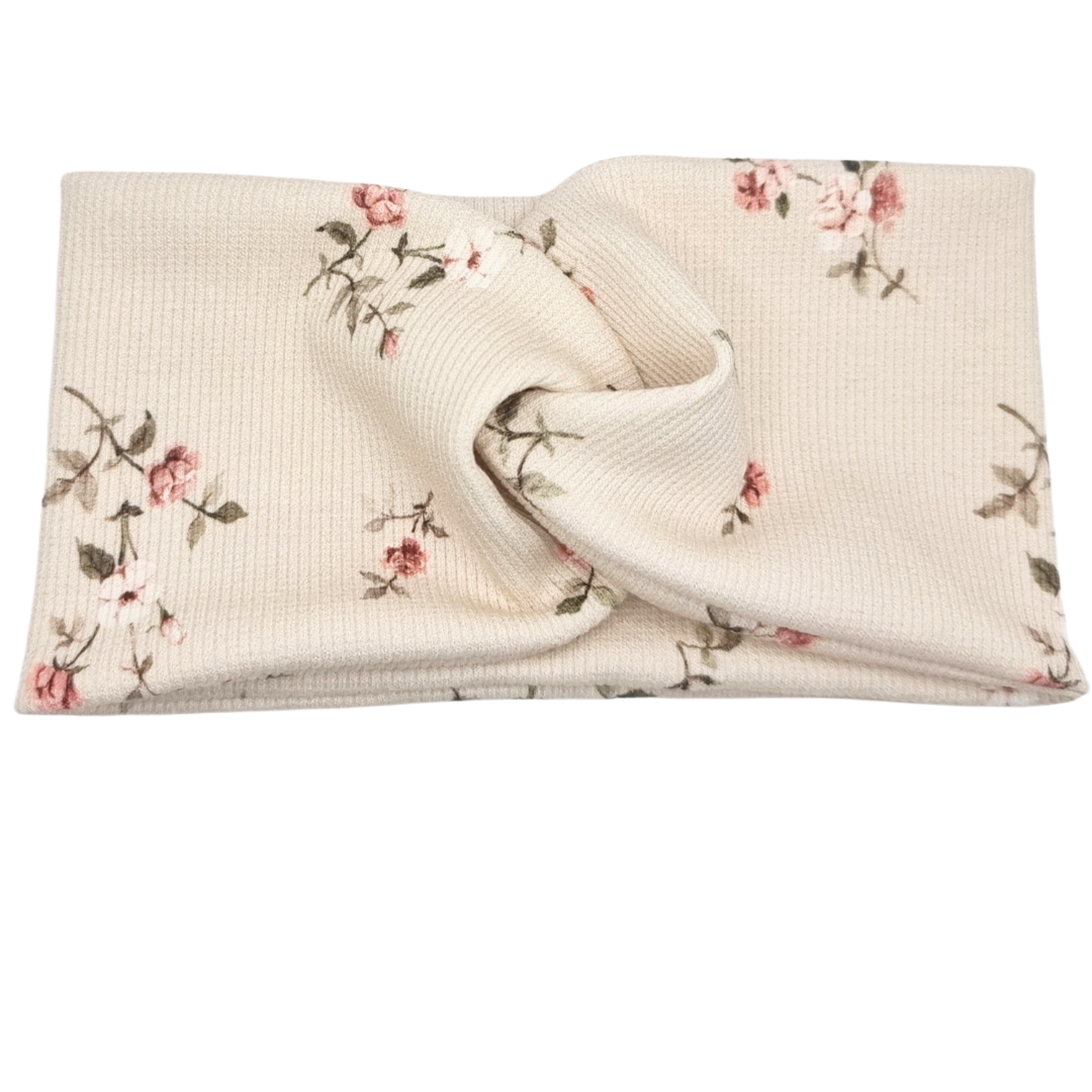 Opaska szeroka przeplatana na głowę beżowa w drobne kwiatuszki