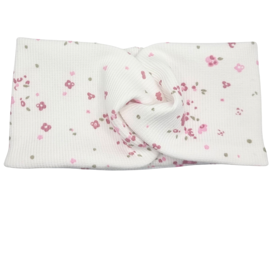 Opaska szeroka przeplatana na głowę biała w malutkie kwiatuszki