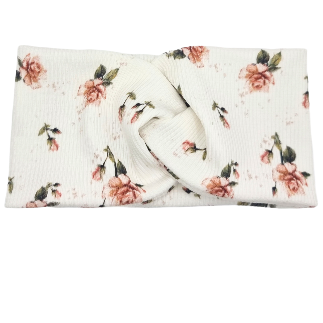 Opaska szeroka przeplatana na głowę biała w różyczki