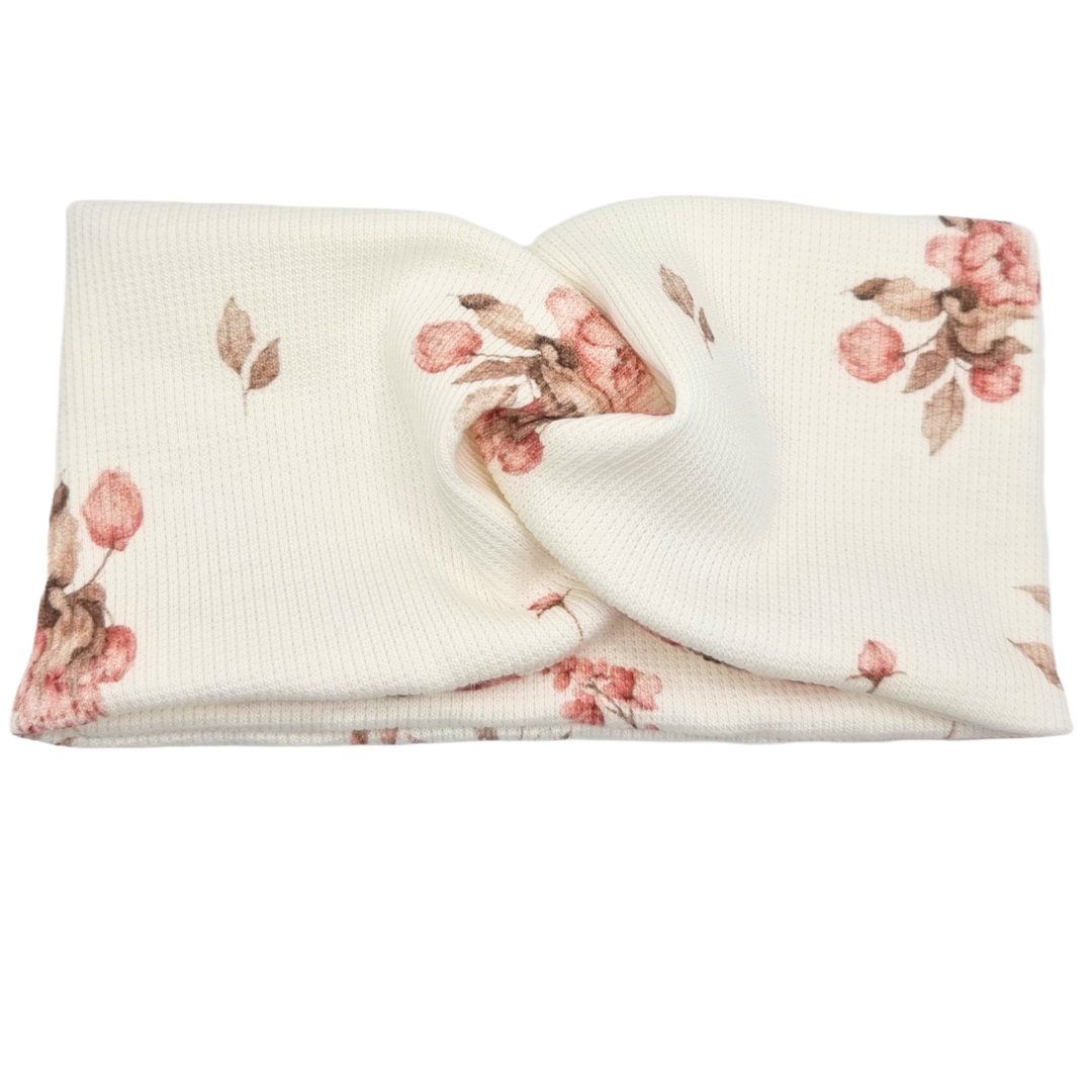 Opaska szeroka przeplatana na głowę ecru w kwiatki