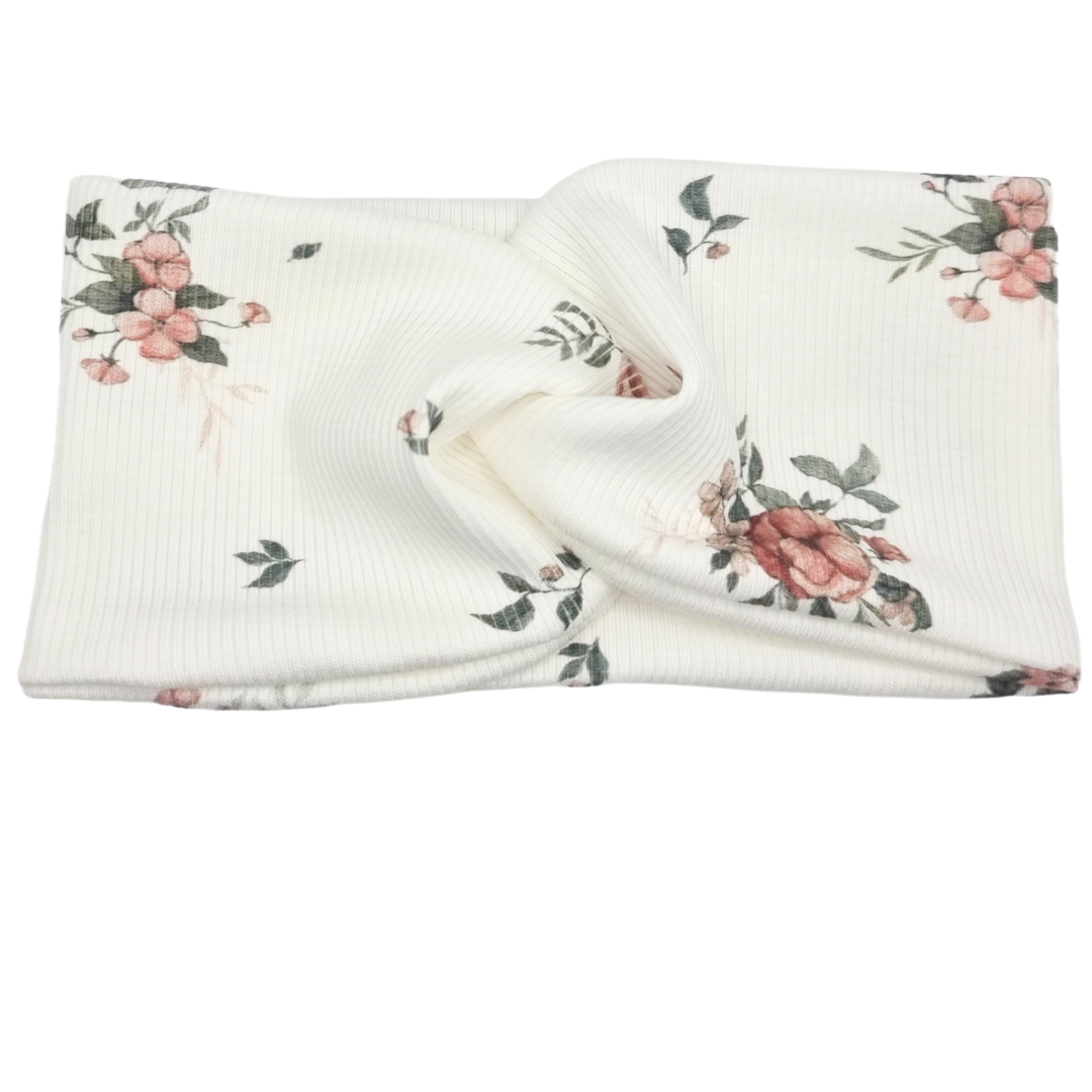Opaska szeroka przeplatana na głowę ecru w listki i kwiaty