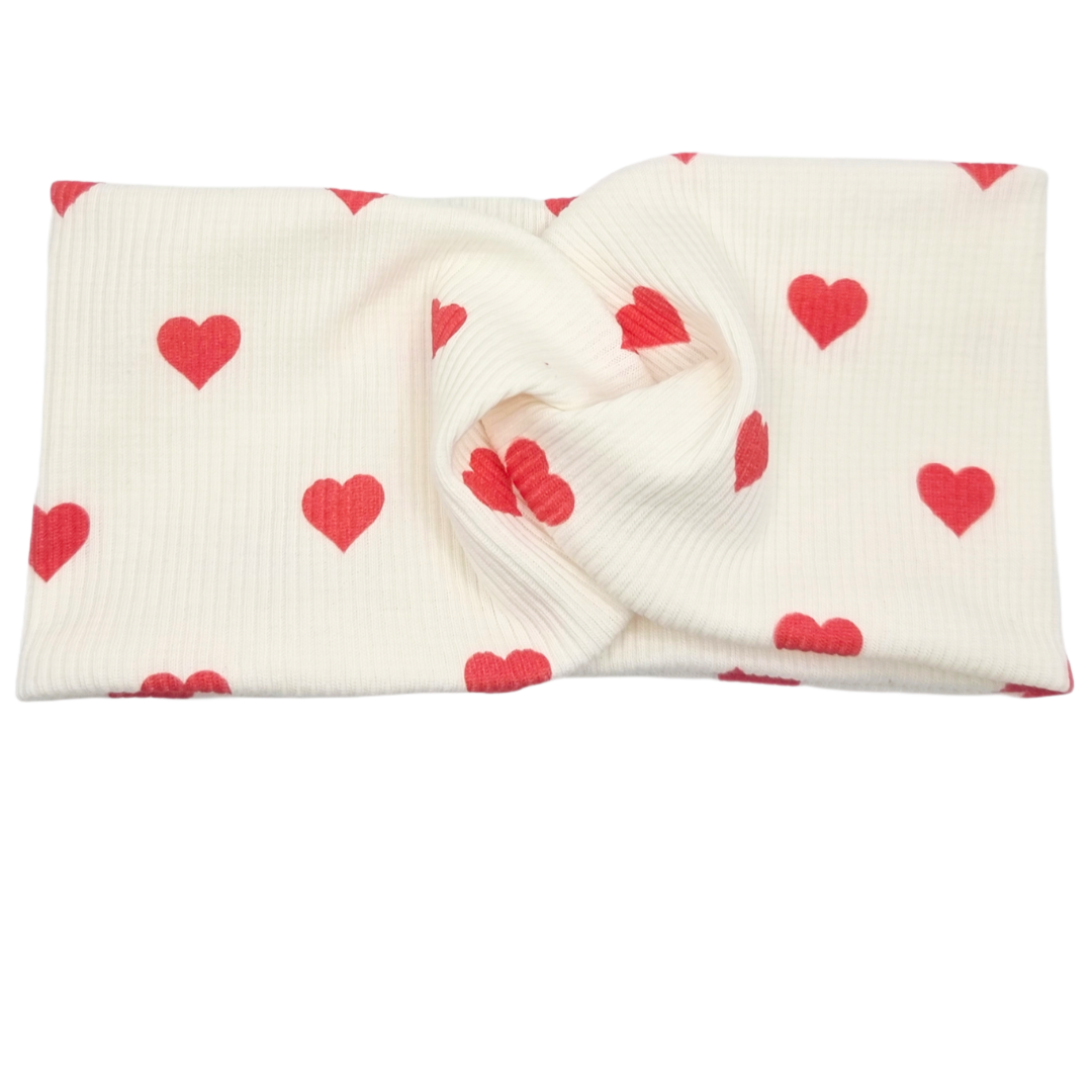 Opaska szeroka przeplatana na głowę ecru w serduszka