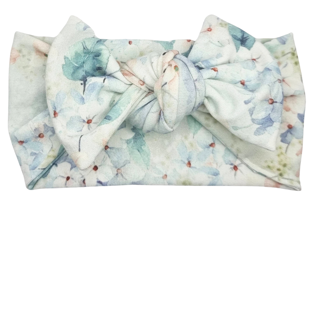 Opaska szeroka z kokardą błękitne kwiatuszki
