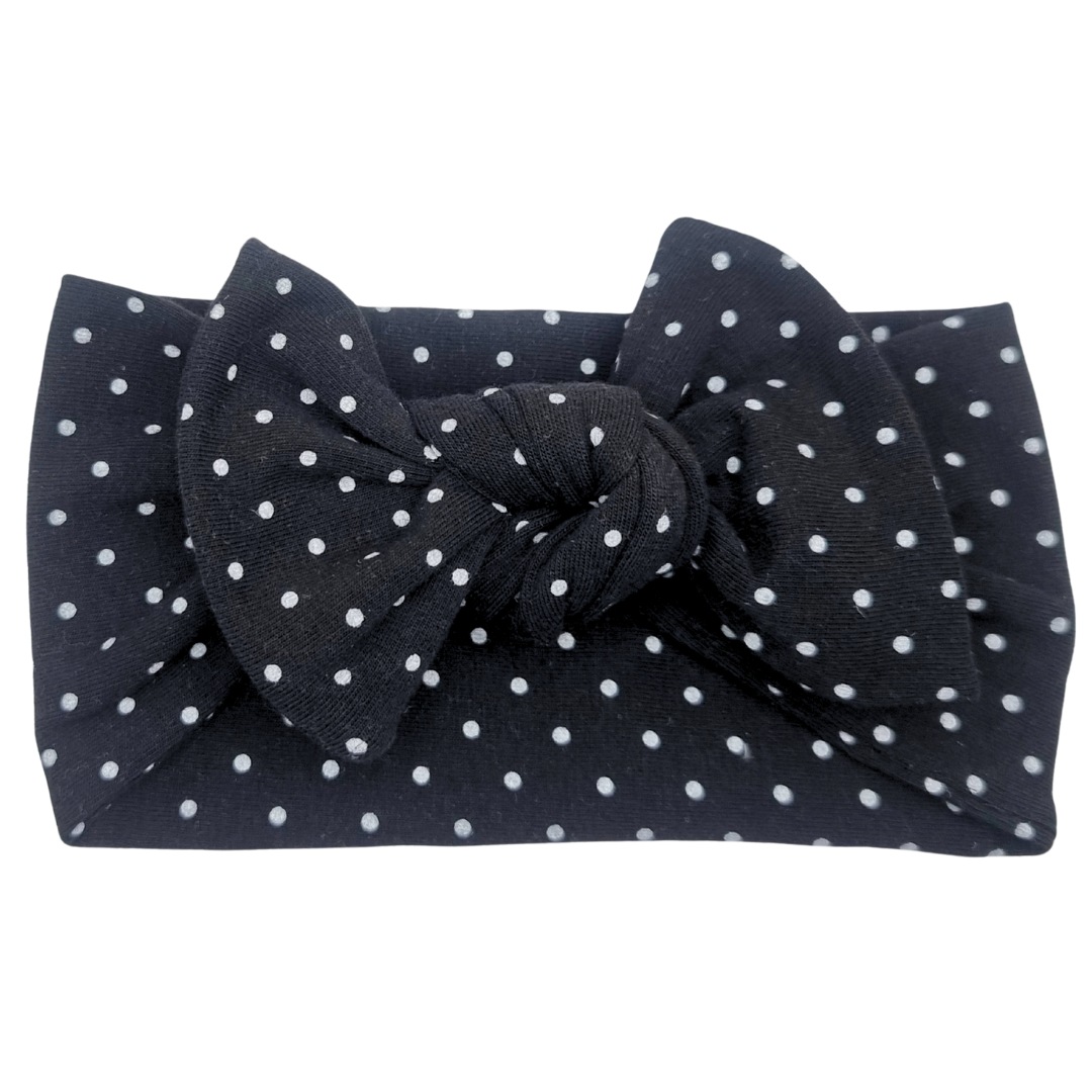 Opaska szeroka z kokardą czarna w białe groszki