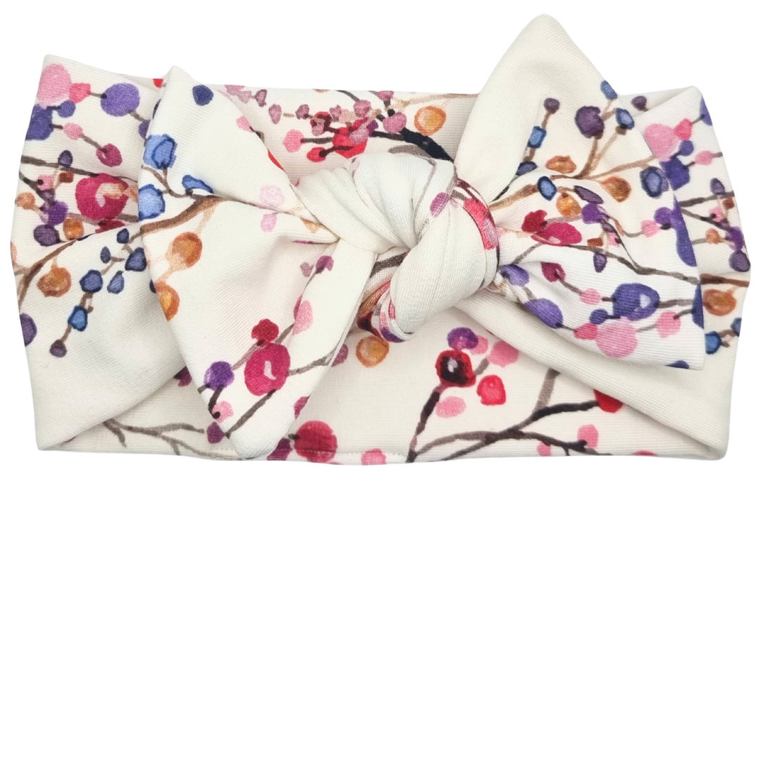 Opaska szeroka z kokardą ecru w kolorową jarzębinę