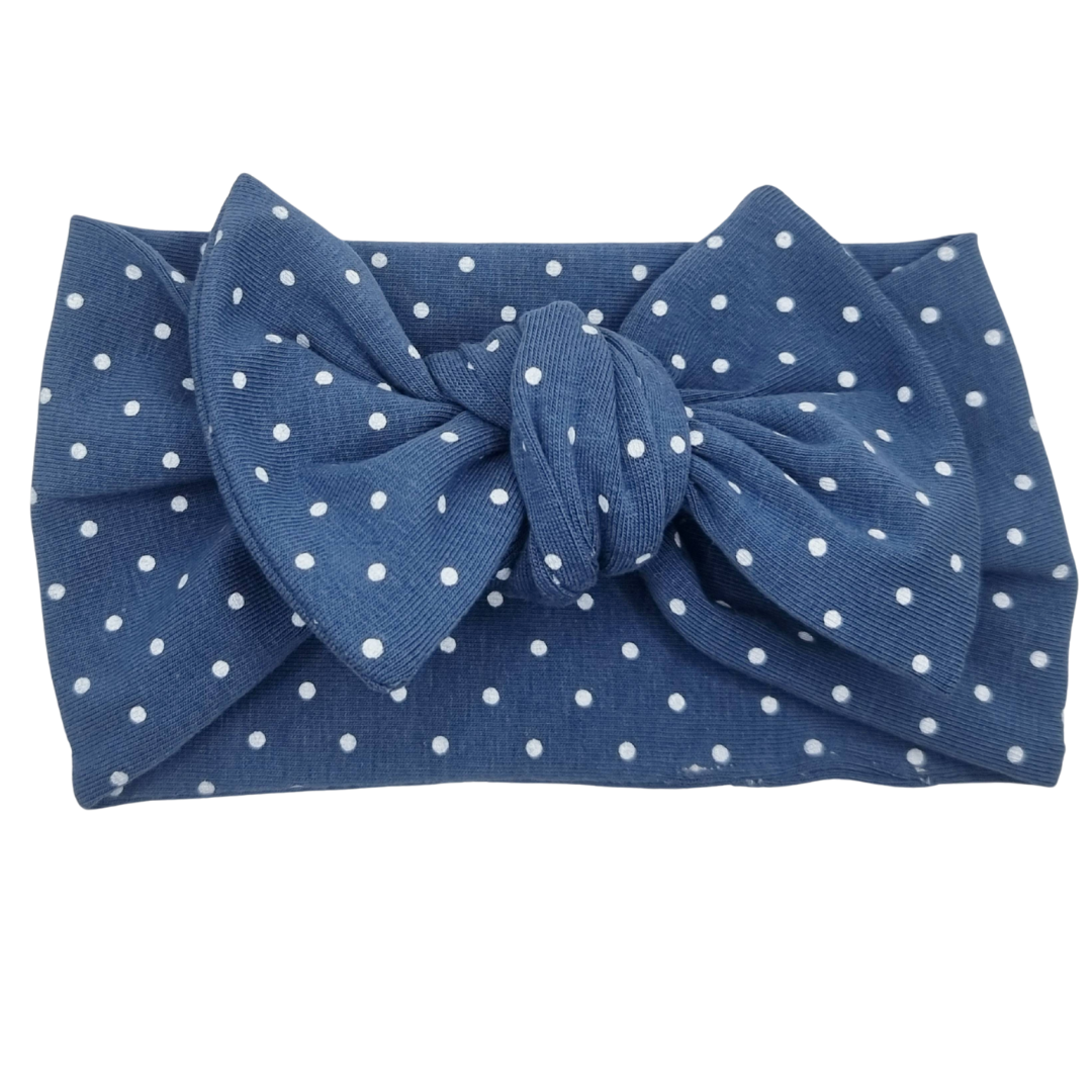 Opaska szeroka z kokardą granatowa w białe groszki