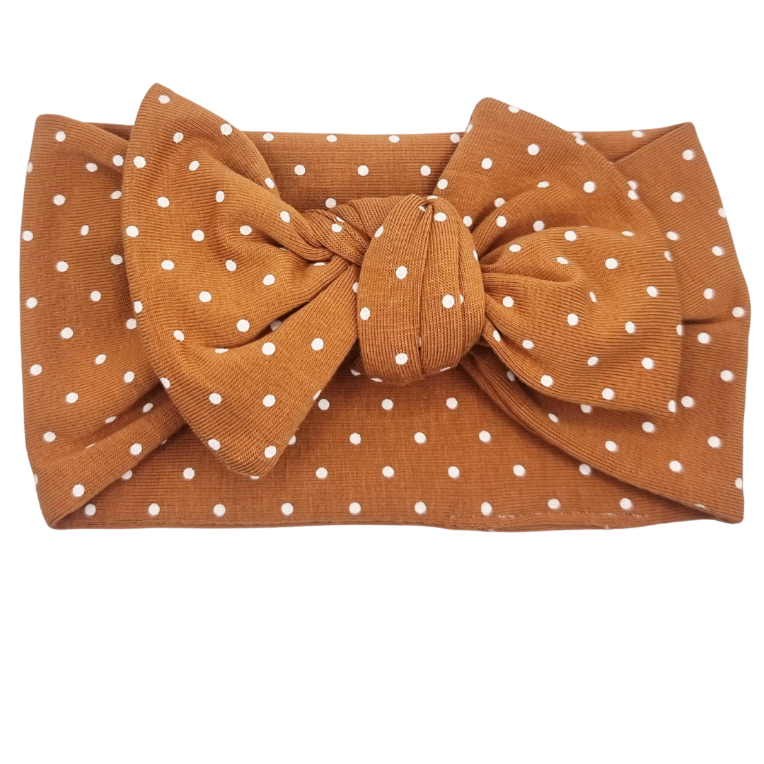 Opaska szeroka z kokardą karmel w kwiaty