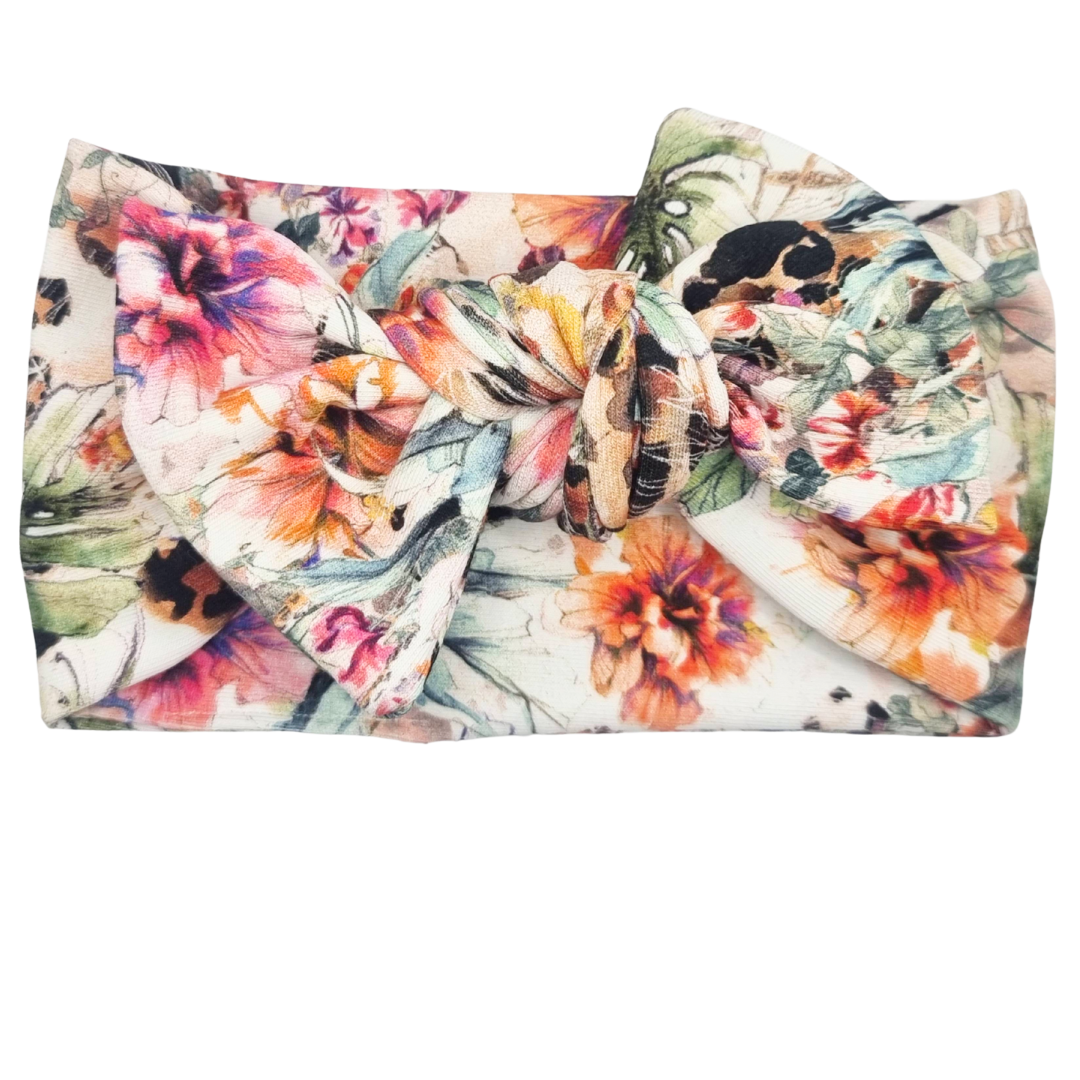 Opaska szeroka z kokardą kwiatuszki i panterka