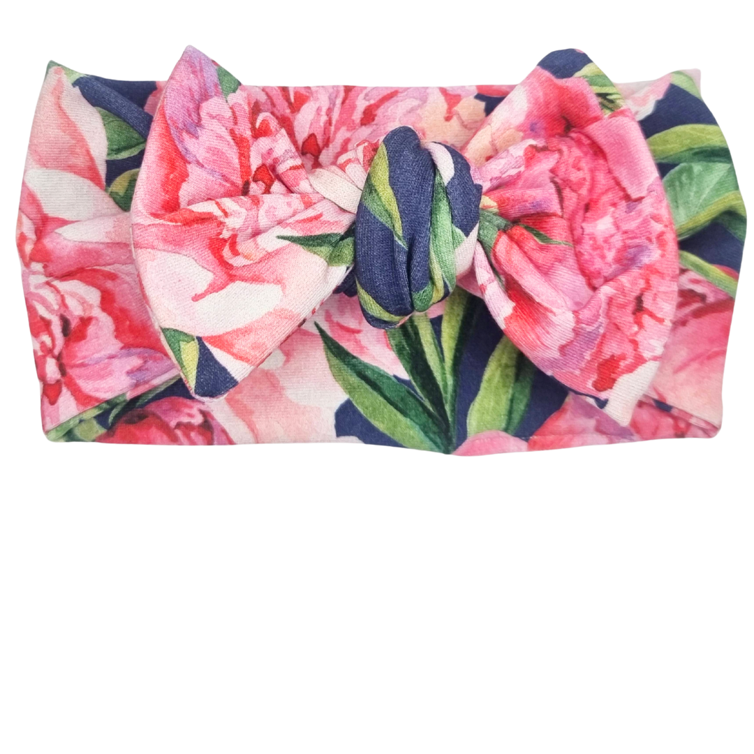 Opaska szeroka z kokardą kwiaty duże kolorowe