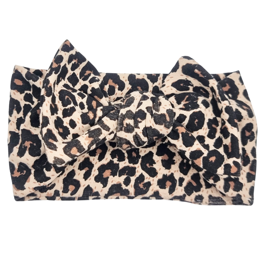 Opaska szeroka z kokardą panterka na beżu