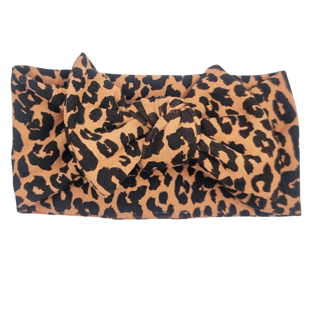 Opaska szeroka z kokardą panterka na karmelu