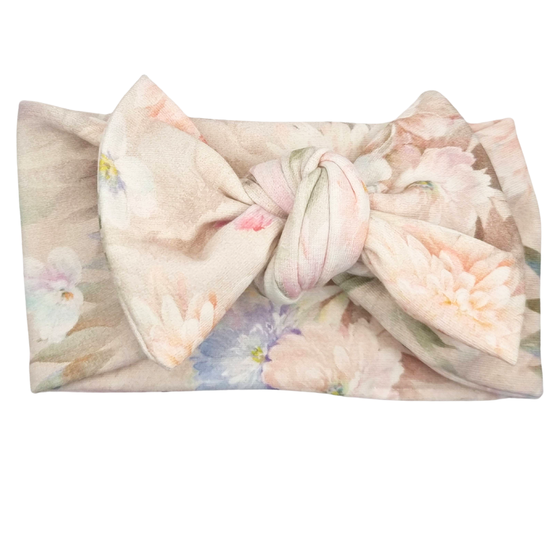 Opaska szeroka z kokardą pastelowa w kwiaty