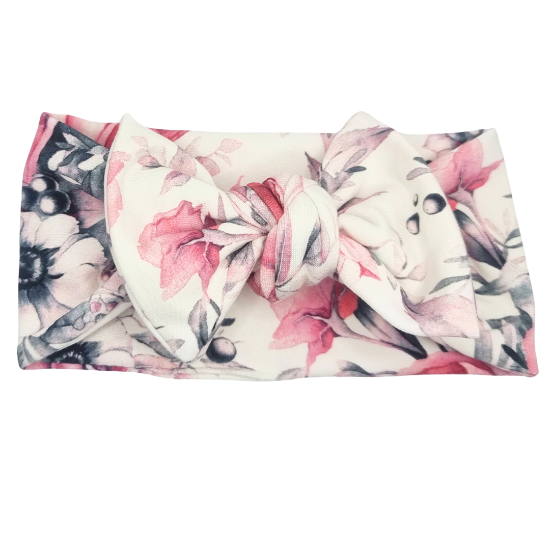Opaska szeroka z kokardą śmietankowa w kwiaty
