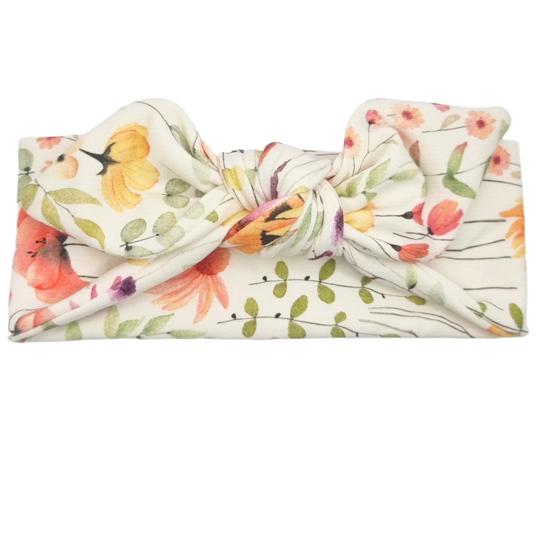 Opaska z kokardą ecru w polne kwiatuszki