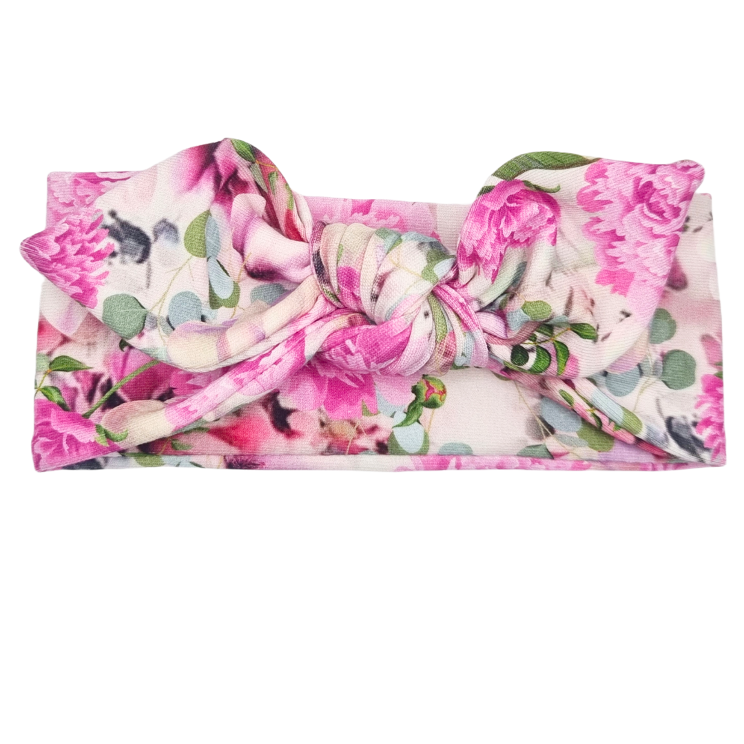 Opaska z kokardą ecru w różowe kwiatki
