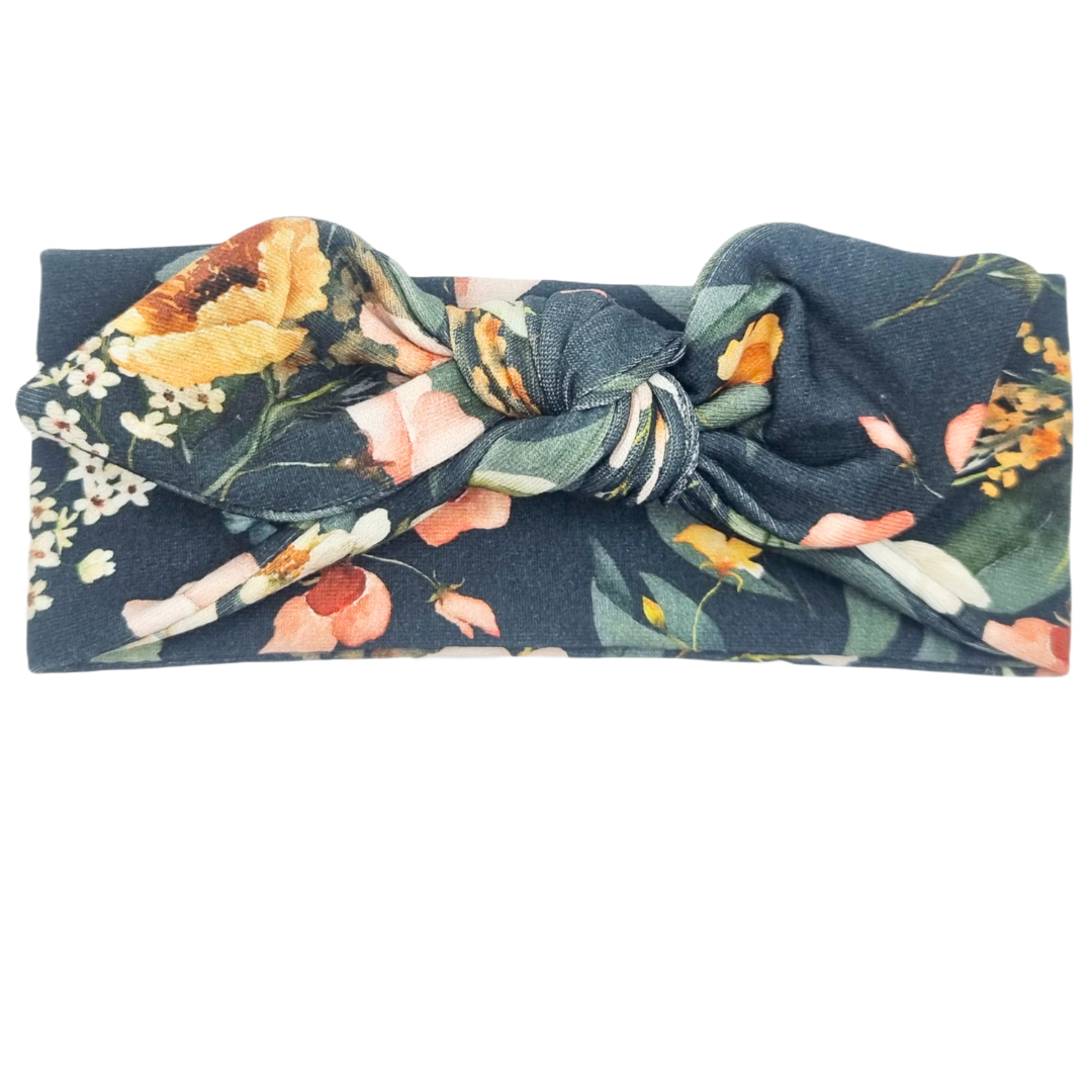 Opaska z kokardą granatowa w kwiatki